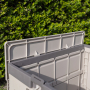 Hij is voorzien van een los deksel, wat de spullen in de krat extra bescherming geeft en waardoor het mogelijk is om iets op de krat te zetten.