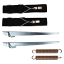De set bestaat uit stevige spanbanden, haringen voor zwaar gebruik, het unieke verbindingsstuk voor Thule profielen en spanveren voor maximale sterkte.